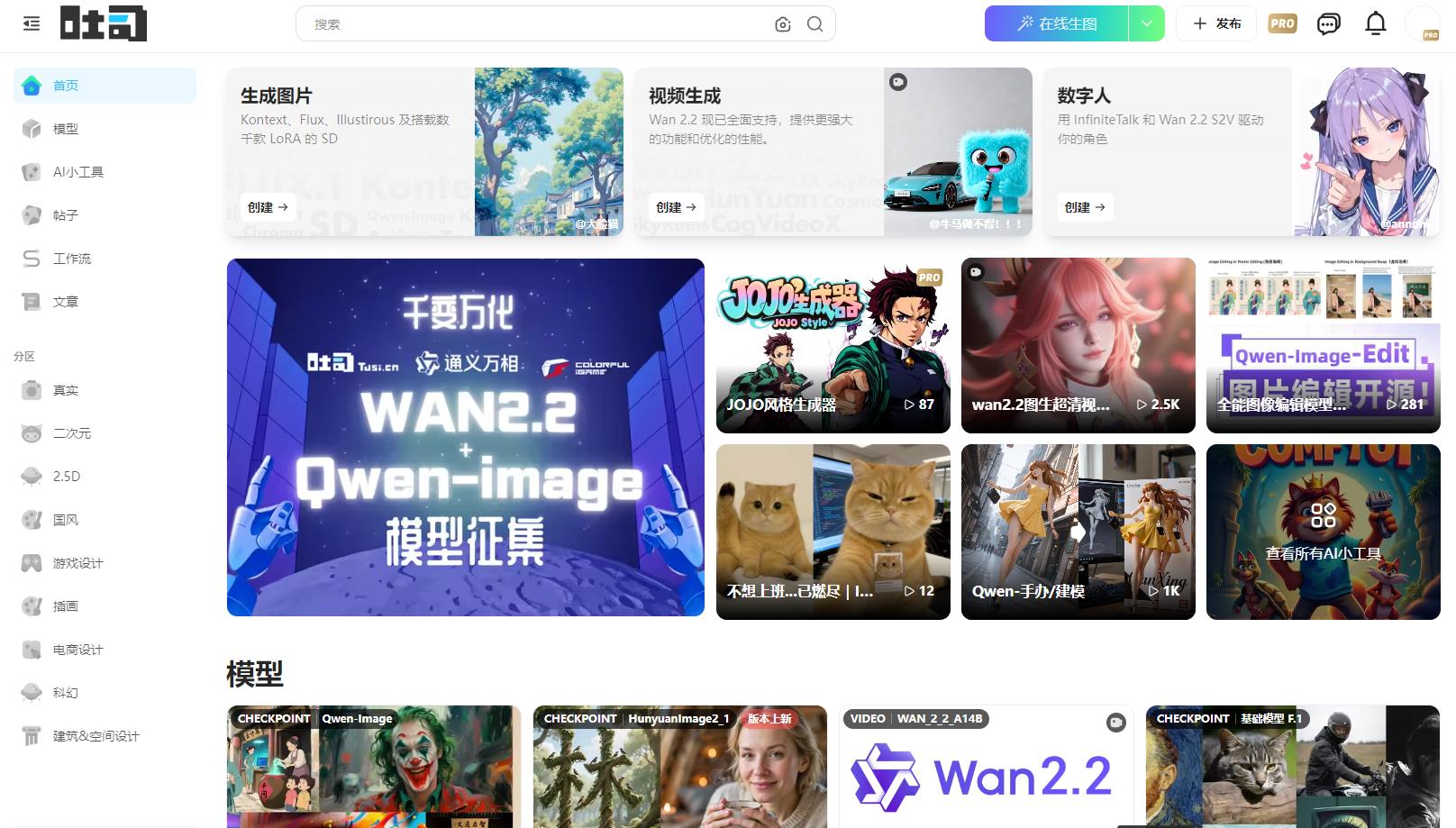吐司 tusi.cn 是一个面向AI创作者的模型分享社区,所有文生图模型不仅可以下载到本地,还支持在线运行。当然,你也可以在社区中上传和共享你的模型。