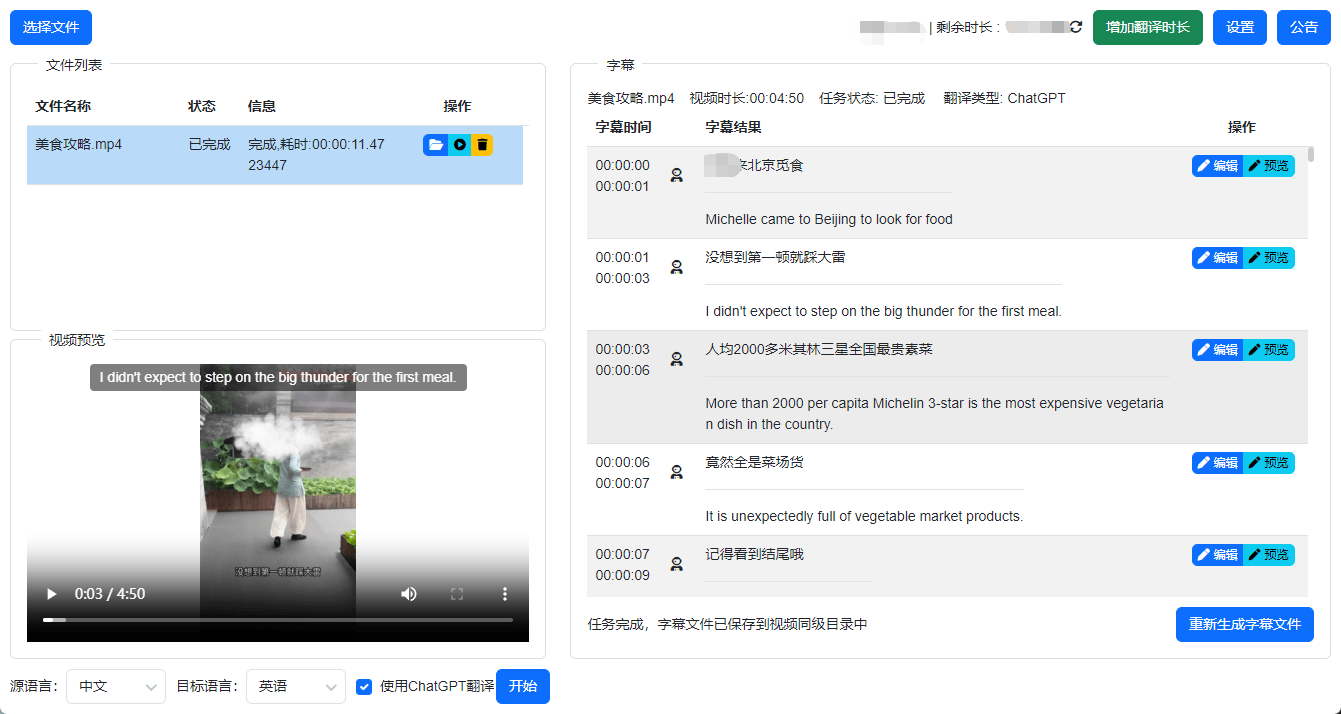 AI一键视频加字幕、字幕翻译