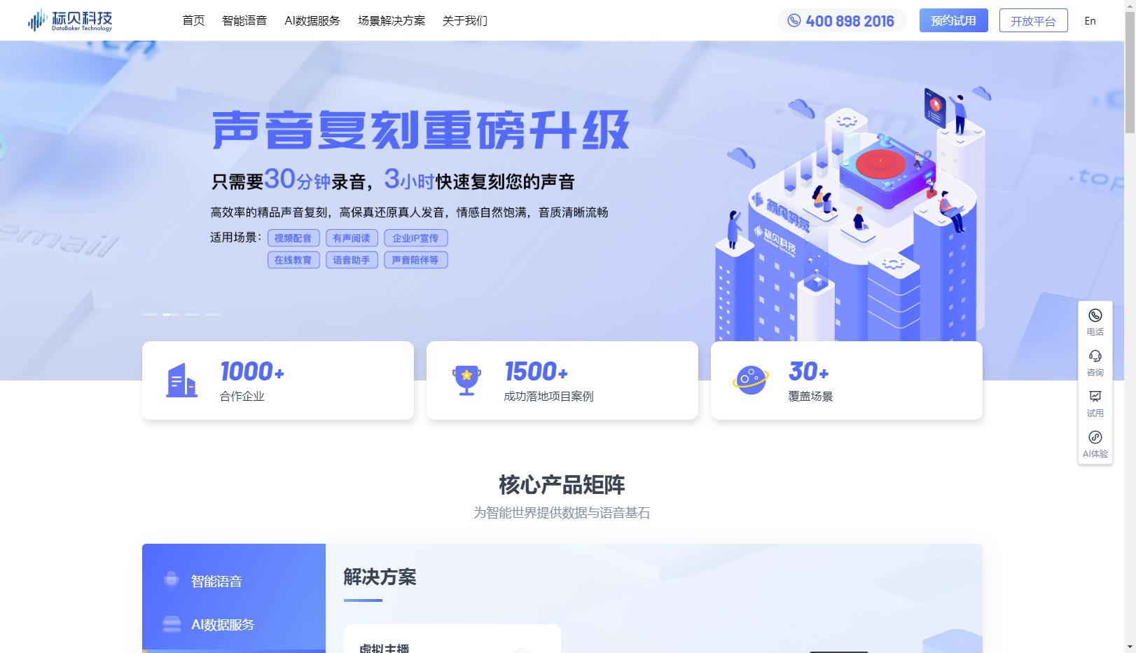 技术产品有:声音转换、情感合成、长语音识别、在线合成、声音复刻