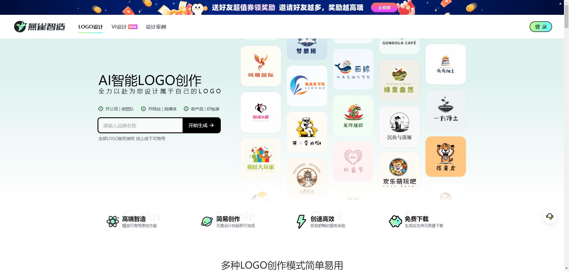 为用户提供LOGO免费设计在线生成服务,适用于公司LOGO设计、品牌LOGO设计、企业LOGO设计等场景,无需下载软件,即可自己在线制作LOGO,并且提供源文件
